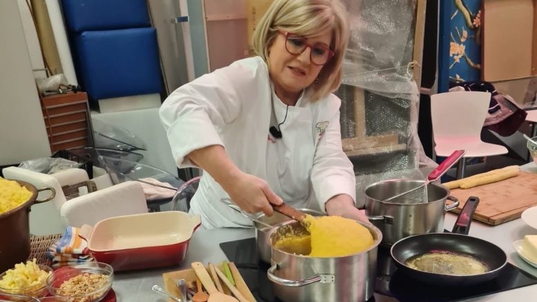 La veronese Cinzia Beozzi cucina la polenta davanti alle telecamere Rai di Uno Mattina.