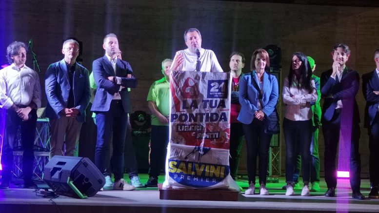 Matteo Salvini alla festa della Lega di Oppeano lancia Alberto Stefani candidato presidente in Veneto in vista delle regionali.
