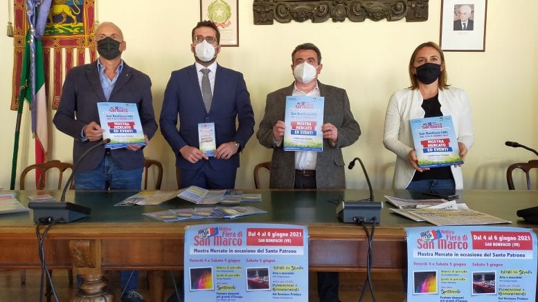 A San Bonifacio la storica Fiera di San Marco dedicata al Santo Patrono, anche se nella versione light di ‘mostra mercato’, riconferma la sua presenza il 4, 5 e 6 giugno. E ora finalmente ci siamo, come ha annunciato il sindaco Giampaolo Provoli, con l’assessore alle Attività Produttive Simona De Luca, il manager del Distretto del Commercio Giovanni Fontana, e il direttore generale di Delphi International, Riccardo Cavicchi.