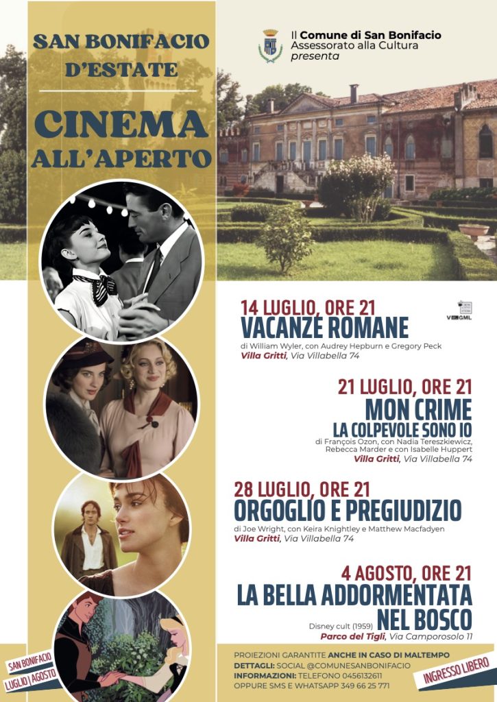 Il grande cinema sbarca a San Bonifacio a Villa Gritti: ingresso gratis.