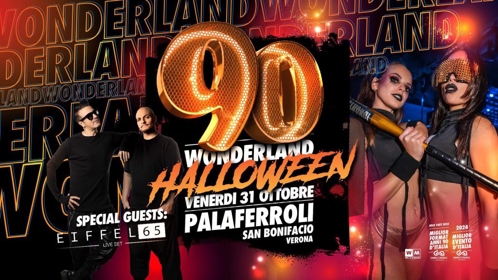 Il primo evento in calendario è l’atteso “90 Wonderland – Halloween Edition” che si terrà venerdì 31 ottobre. La serata vedrà la partecipazione straordinaria degli Eiffel 65, il celebre gruppo icona della musica dance internazionale degli anni ’90. L’evento promette uno show di grande impatto, interamente dedicato alle sonorità, ai colori e all’atmosfera di quel decennio, rivolto a un pubblico di tutte le età.