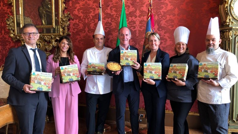 A ricevere questi ambasciatori della pasticceria e della storia locale c’erano il presidente della Regione Veneto, Luca Zaia e la vicepresidente Elisa De Berti, che hanno fatto gli onori di casa complimentandosi per l’idea e per la prelibatezza del prodotto.