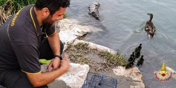 Escursione a lieto fine per una famiglia di anatre che, la sera del 9 Luglio, passeggiando per il centro storico di Verona si è ritrovata chiusa nel cavedio di un palazzo.