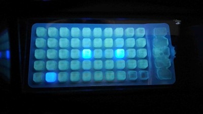 In foto la fluorescenza dei pozzetti positivi che identificano la presenza di Pseudomonas aeruginosa.