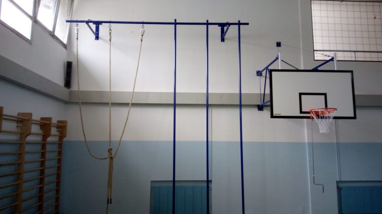 Ma soprattutto il totale rinnovo delle attrezzature sportive: tabelloni da basket (regolabili in altezza anche per l’utilizzo del minibasket), rete da pallavolo con protezioni antinfortunistiche, palchetto per l’arbitro, quadro svedese a 16 fori (4×4) in legno, pertiche in acciaio verniciato, segnapunti manuale, compressore per gonfiaggio palloni, gabbia porta palloni, ritti e asticella per salto in alto, materasso in gomma espansa delle dimensioni di cm 400x200x40, cinque tappeti ad alta densità da cm 200x100x5, materasso per ginnastica da cm 200x100x10, panca svedese in legno, protezioni spigoli porta di entrata in palestra.