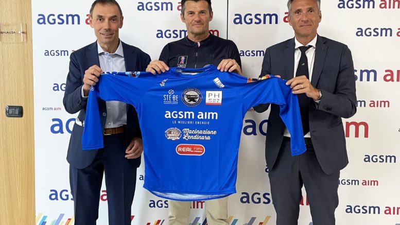 Il triatleta Giampaolo Bendinelli, unico italiano che parteciperà in Oregon ad una prova di Campionato del mondo, categoria ultraironman, ha fatto visita alla sede di Agsm Aim mostrando la maglia sponsorizzata con cui disputerà l’impresa.