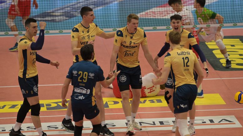 VERONA VOLLEY: Spirito 3, Asparuhov 14, Nikolic 9, Jensen 22, Mozic 15, Cortesia 8, Donati (L), Bonami (L), Wounembaina 1, Magalini 0. N.E. Zanotti, Qafarena, Vieira De Oliveira.