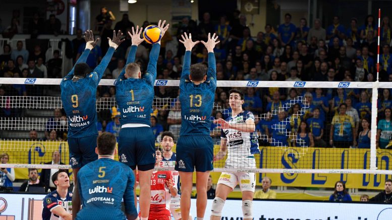 Lisinac apre il terzo set, poi Mozic trova un mani out che vale l’1 a 2. La squadra di casa tenta nuovamente la fuga ma Sapozhkov risponde prima con un tentativo vincente sotto rete e poi con un ace. Trento riprende la sua marcia e si riporta avanti di cinque lunghezze (8-3). La WithU fatica, ma piazza un ottimo primo tempo con Cortesia per il 10-4. Perrin dà la carica con un punto diretto dai nove metri (14-8), andando a segno anche da seconda linea poco dopo. Lisinac ristabilisce le distanze, poi Michieletto sigla il 21-12. Due attacchi di Mozic vanno a buon fine, ma la gara si chiude con il diagonale di Michieletto (25-16).