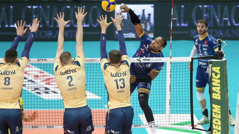 Sfiorato il successo nel primo set (vinto dai padroni di casa per 27-25), gli scaligeri hanno ingaggiato una sfida punto a punto con gli emiliani che hanno centrato il successo finale facendo valere l’esperienza di Ngapeth, Nimir e Leal. Ottimo prova soprattutto di Luca Spirito in cabina di regia e del solito Rok Mozic, top scorer a pari merito con Leal a 15 punti.