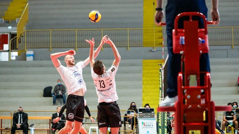 NBV VERONA: Kaziyski 10 (C), Magalini 10, Caneschi ne, Peslac 2, Aguenier 6, Asparuhov 1, Jensen 16, Spirito 0, Zanotti ne, Donati (L), Bonami (L). All.: Stoytchev.