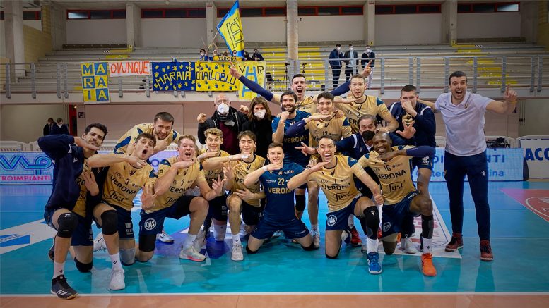 Da applausi. Verona Volley vince ancora, la seconda gara consecutiva. Dopo l’entusiasmante vittoria nel derby veneto con Padova, i gialloblù battano Cisterna e tornano da questa trasferta con 3 importantissimi punti in tasca in chiave classifica. Come con Kione Padova, dopo l’iniziale svantaggio Verona ritrova smalto e la carica vincendo con Top Volley Cisterna per 3 set a 1.