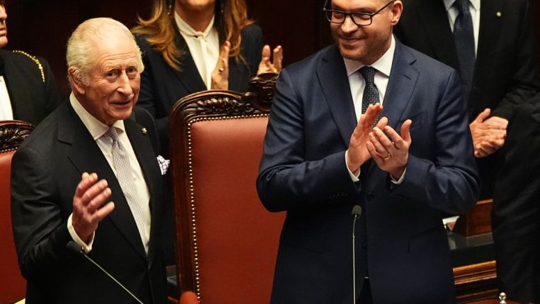 ROMA (ITALPRESS) – “Il Regno Unito e l’Italia sono legati da una storia di amicizia, che affonda le proprie radici nei secoli, il rapporto tra i due paesi è contraddistinto da una profonda fiducia nei valori della libertà e della democrazia che trova nelle istituzioni parlamentari il suo più saldo presidi”. Lo ha detto il presidente della Camera, Lorenzo Fontana, nel corso della cerimonia in occasione della visita di Stato di re Carlo III e della regina Camilla nell’Aula di Montecitorio.