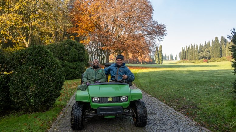 Work in progress al Parco Giardino Sigurtà: nei 60 ettari del giardino proseguono i lavori di manutenzione e di assestamento. Si tratta della potatura di alberi e arbusti (30 mila esemplari di bosso e centinaia di alberi secolari). della raccolta delle foglie per la pulizia delle strade, della salvaguardia dei prati e la creazione dei compost (fertilizzante organico). della manutenzione dei viali e delle strade in porfido e degli impianti di irrigazione (100 km di tubature) e delle strutture.