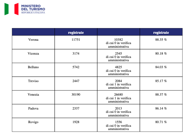 Secondo i dati del Ministero del Turismo, in Veneto ci sono attualmente 57.569 strutture registrate, ma ben 7.484 (circa il 13%) non hanno richiesto il CIN. A Verona, dove sono stati rilasciati 11.751 CIN, circa il 12% delle strutture non risulta ancora regolare. Anche altre città come Vicenza, Treviso e Belluno hanno una percentuale significativa di strutture fuori legge. A Rovigo, ad esempio, il 19% degli affitti brevi non rispetta la normativa.