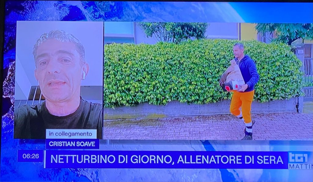 L’allenatore del Caldiero Cristian Soave di “buonora” e in divisa da lavoro in diretta su Rai 1.