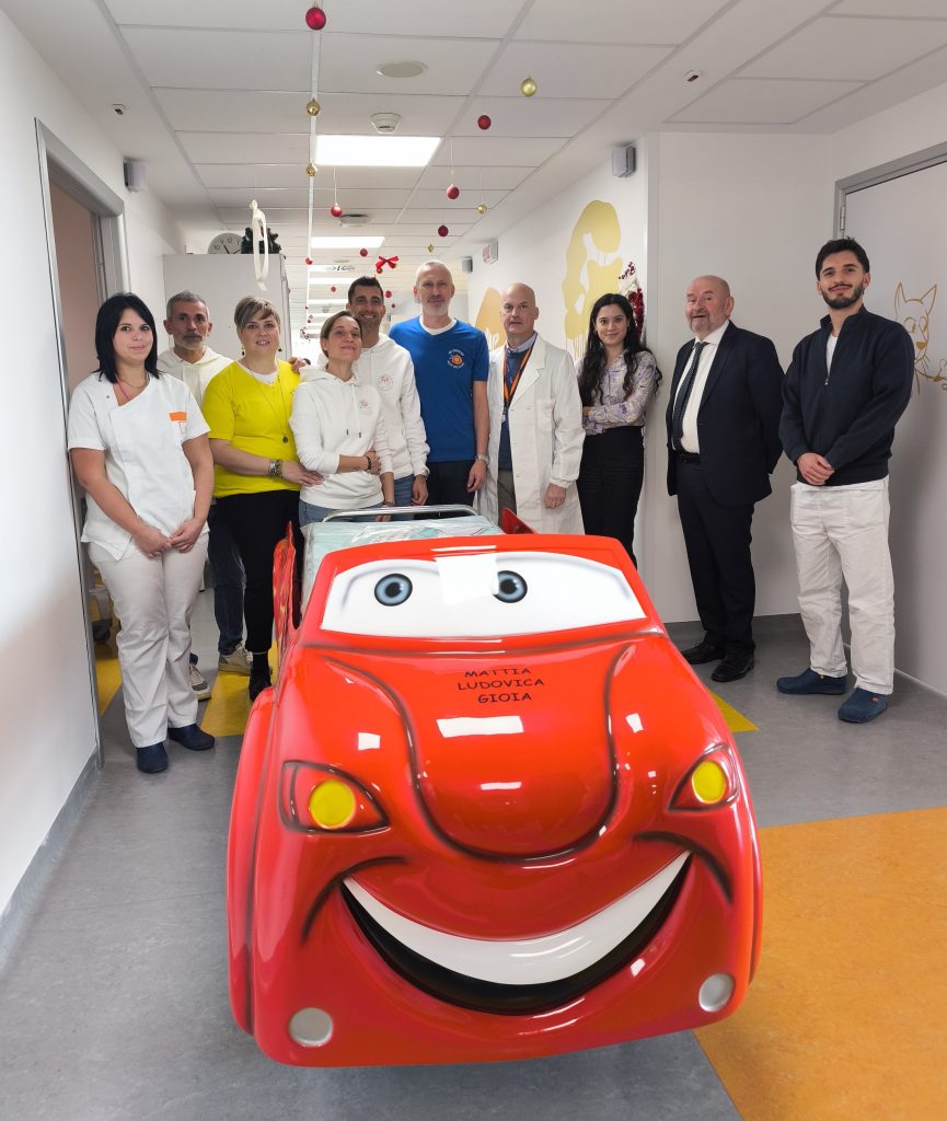 Verona, Natale in chirurgia pediatrica: la barella a forma di macchinina per i bambini.