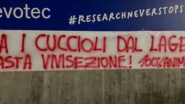 Blitz animalista ieri sera, mercoledì, alla sede Aptuit di Verona, in via Fleming. A compierlo un gruppo di appartenenti a Centopercentoanimalisti, per protestare contro l’arrivo dalla Francia di un furgone con 20 cuccioli di Beagle dell’età di 4 mesi: “Povere creature fatte nascere apposta per venir torturate in esperimenti che non hanno nulla di scientifico, nessuna utilità per gli umani, e anche se la avessero sono comunque immorali”, sostengono gli animalisti.