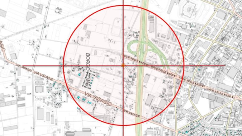 È stata individuata una “Zona Rossa”, all’interno della quale è vietato sostare e transitare, anche a piedi, entro il raggio di 755 metri dal luogo del rinvenimento. In particolare sono interessate Piazza Gianfranco Sforni, Piazzale Europa, Strada Ca’ Brusà, Strada Della Genovesa, Via Cefeo, Via Dell’Esperanto, Via Enrico Fermi, Via Flavio Gioia, Via Giove, Via Mercurio, Via Mezzacampagna, Via Sacra Famiglia, Via Saturno, Via Selenia, Via Vigasio, Viale Delle Nazioni.