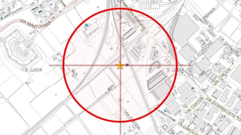 La Protezione civile ha individuato la “zona rossa”, all’interno della quale è vietato sostare e transitare, anche a piedi, entro il raggio di 334 metri dal luogo del rinvenimento (segnato sulla mappa allegata). In particolare sono interessate via Torricelli, via Enrico Fermi, via Chioda e via Mantovana nei numeri civici specificati su questa pagina del sito del Comune.