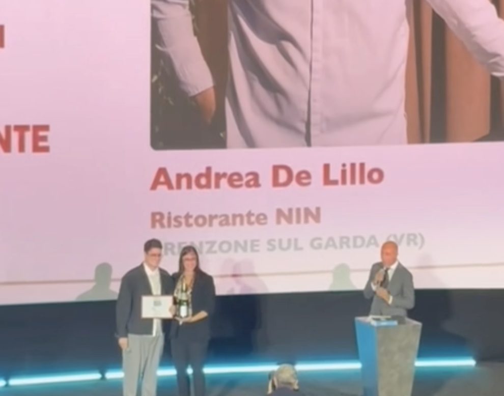 Il premio più ambito per i giovani professionisti, quello di “Cuoco Emergente”, è stato assegnato a un talento veronese: il 27enne Andrea De Lillo del ristorante Nin, a Brenzone sul Garda, che punta tutto sui “sapori locali e sostenibilità”, come ha affermato quando ha ricevuto il premio.
