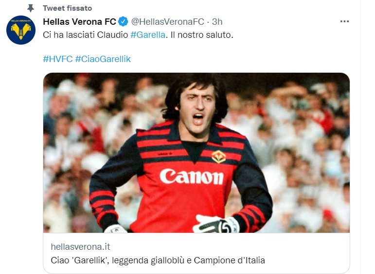 Immancabile anche il cordoglio dell’amministrazione comunale: “A nome della città di Verona, il sindaco Damiano Tommasi e l’amministrazione comunale esprimono vicinanza alla famiglia di Claudio Garella, uno dei principali protagonisti dell’esperienza calcistica più importante della storia veronese e si stringono ai familiari in questo difficile momento”.