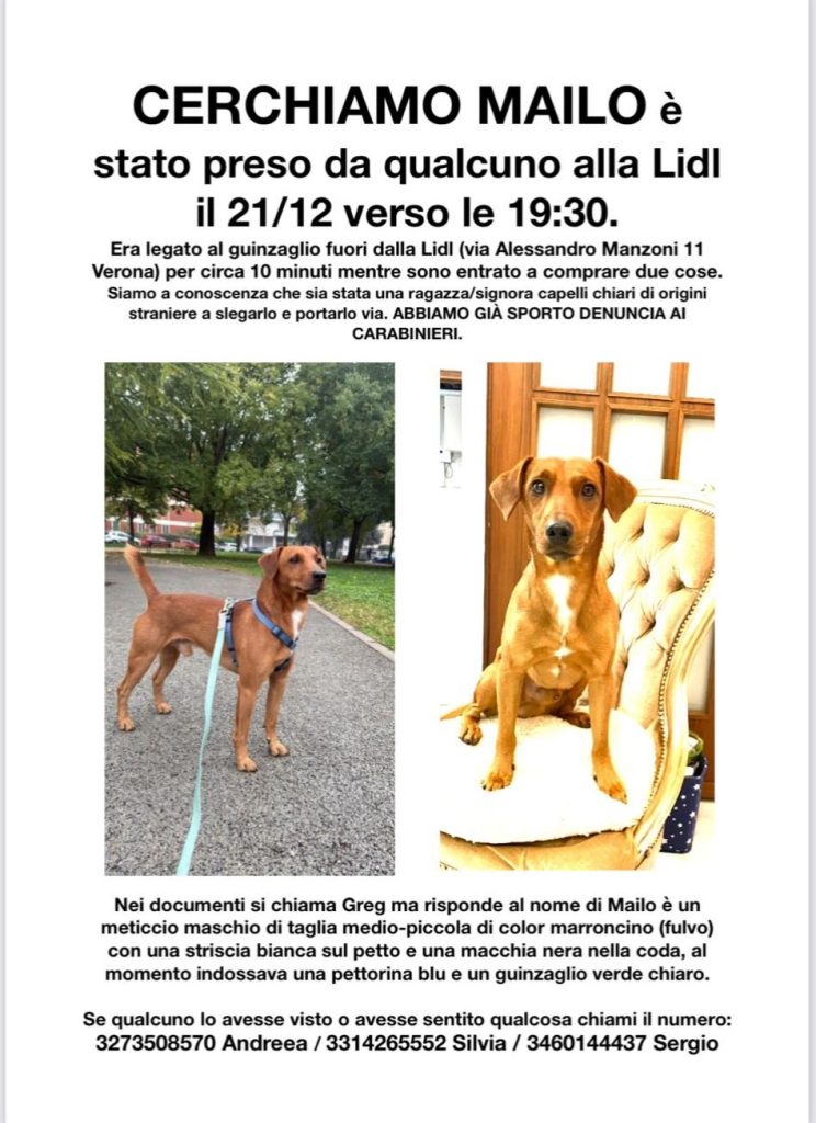 È l’incubo vissuto lo scorso 21 dicembre da un veronese davanti al punto vendita Lidl di Borgo Milano, vittima di un furto che ha riacceso i riflettori sulla sicurezza degli animali d’affezione in città.