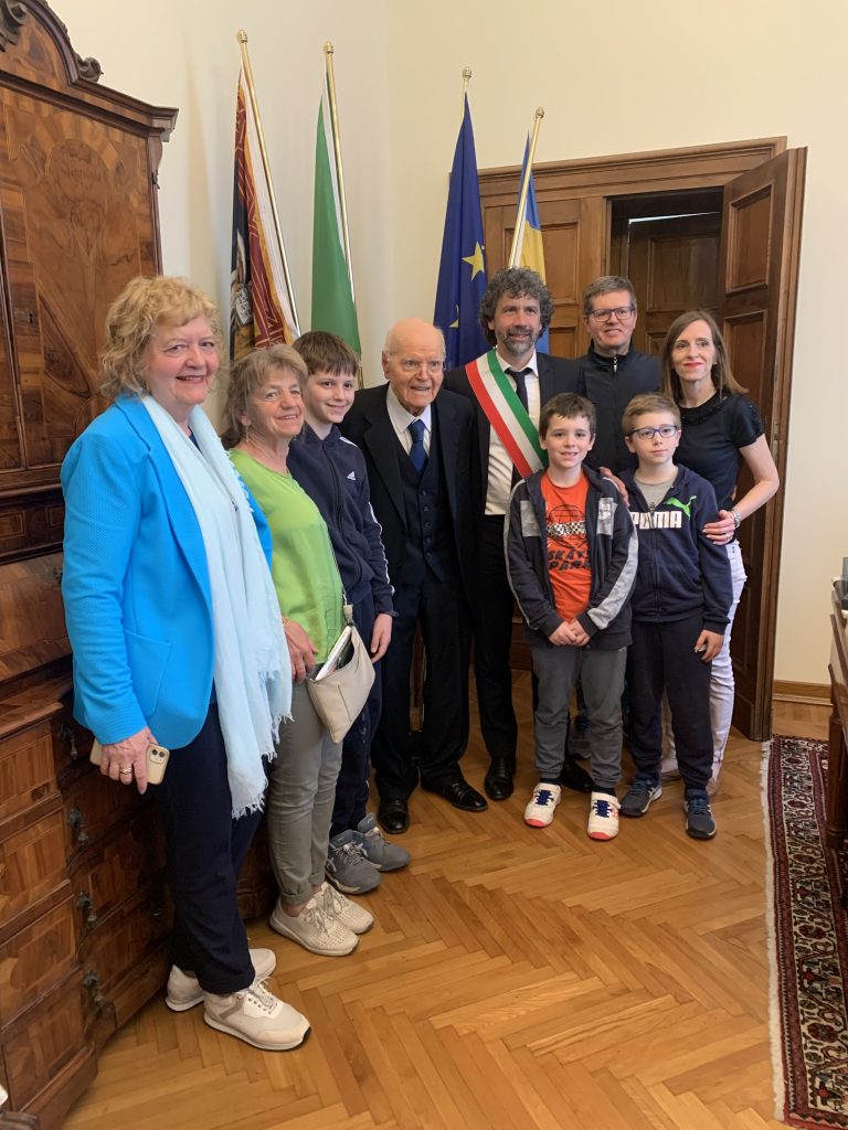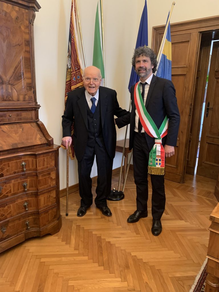 Vittorio è stato accompagnato a palazzo Barbieri dai familiari, tra cui alcuni dei quasi venti tra nipoti e pronipoti, e ha concluso la visita salutando i consiglieri emeriti.