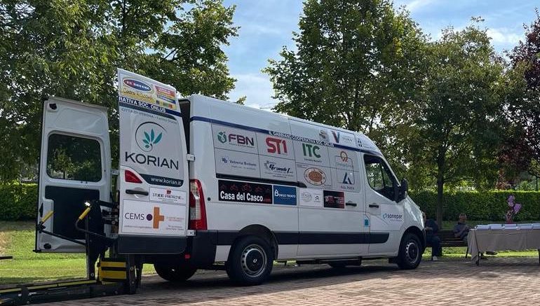 Il nuovo mezzo di trasporto, consegnato in comodato d’uso da PMG Italia, verrà finanziato attraverso la locazione, alle imprese del territorio, di spazi pubblicitari sulla carrozzeria.