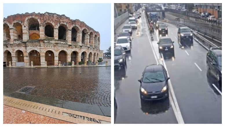 Verona, con la pioggia deserto in centro: code ai centri commerciali, Adigeo preso d’assalto.
