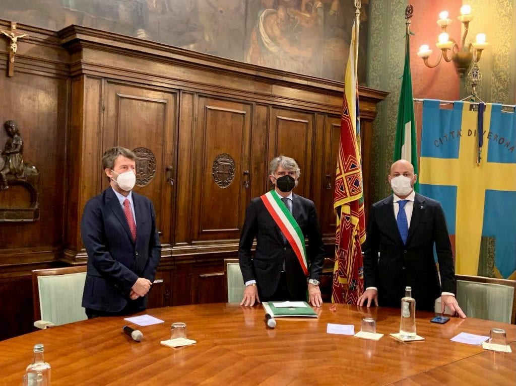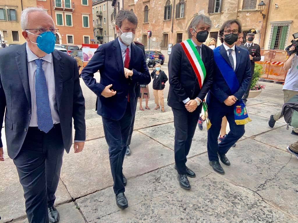 “Questa è una giornata importante nella storia cittadina, è come se chiudessimo un cerchio iniziato più di 700 anni fa con la permanenza di Dante a Verona – ha detto Sboarina -. Il suo esilio in terra scaligera per secoli venne dimenticato, tanto che la nostra città non partecipò ai festeggiamenti degli anniversari danteschi, nemmeno a quello dei 600 anni dalla morte. Un ruolo e una centralità di cui ci siamo voluti riappropriare, perché determinante è stata Verona per Dante, anche nella stesura della Divina Commedia. Oggi siamo onorati di iscriverlo nel registro dei cittadini onorari e di averlo quindi nostro concittadino. Festeggiamenti che stanno proseguendo con tantissime iniziative tra cui la mostra alla Galleria d’Arte Moderna, il restauro della statua di piazza dei Signori e lo studio del Dna di Cangrande. In questo percorso, strategica è stata, e lo è tuttora, la collaborazione sempre più stretta con il Ministero della Cultura. Non solo per le celebrazioni dantesche, ma anche su tanti altri fronti. Primo fra tutti la sinergia per Fondazione Arena, in particolare per la deroga sulla capienza dell’Arena, così come il patrocinio concesso dal Ministero per la collaborazione delle più importanti realtà culturali italiane con il festival lirico. Un fiore all’occhiello di cui andiamo orgogliosi, soprattutto in questa stagione che segna la ripartenza. Ho invitato il ministro Franceschini ad uno spettacolo in Arena e mi ha detto che gli piacerebbe venire”.