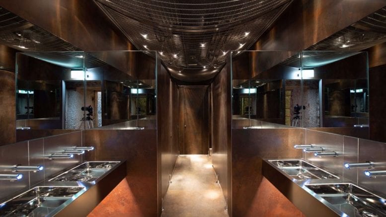 I sanitari sono in acciaio inox, come pure i lavabi, la rubinetteria e gli accessori, scelta funzionale a garantire la massima durabilità in relazione all’estrema intensità dell’utilizzo previsto e per favorire la resistenza ad eventuali atti vandalici: è previsto anche un sistema di asciugamano a lama d’aria, rubinetteria e dispenser di detergente contactless, dal design originale, volto ad ottimizzare l’utilizzo nel momento del massimo afflusso ed evitare il contatto con le mani.