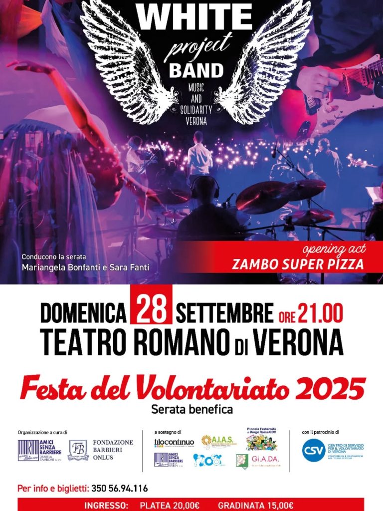 La solidarietà scende in campo con la musica: domenica 28 settembre, alle ore 21 al Teatro Romano di Verona, la “Festa del Volontariato 2025“, una serata benefica organizzata per sostenere importanti associazioni del territorio.