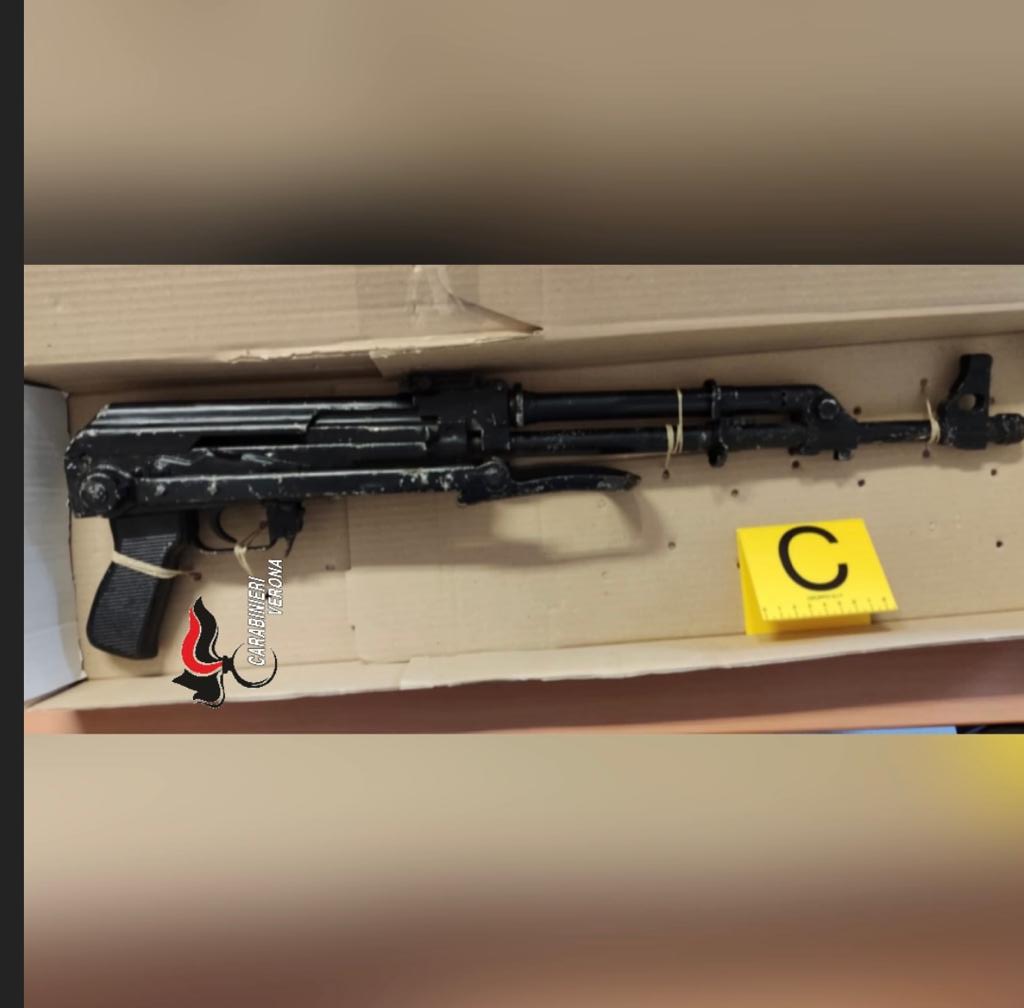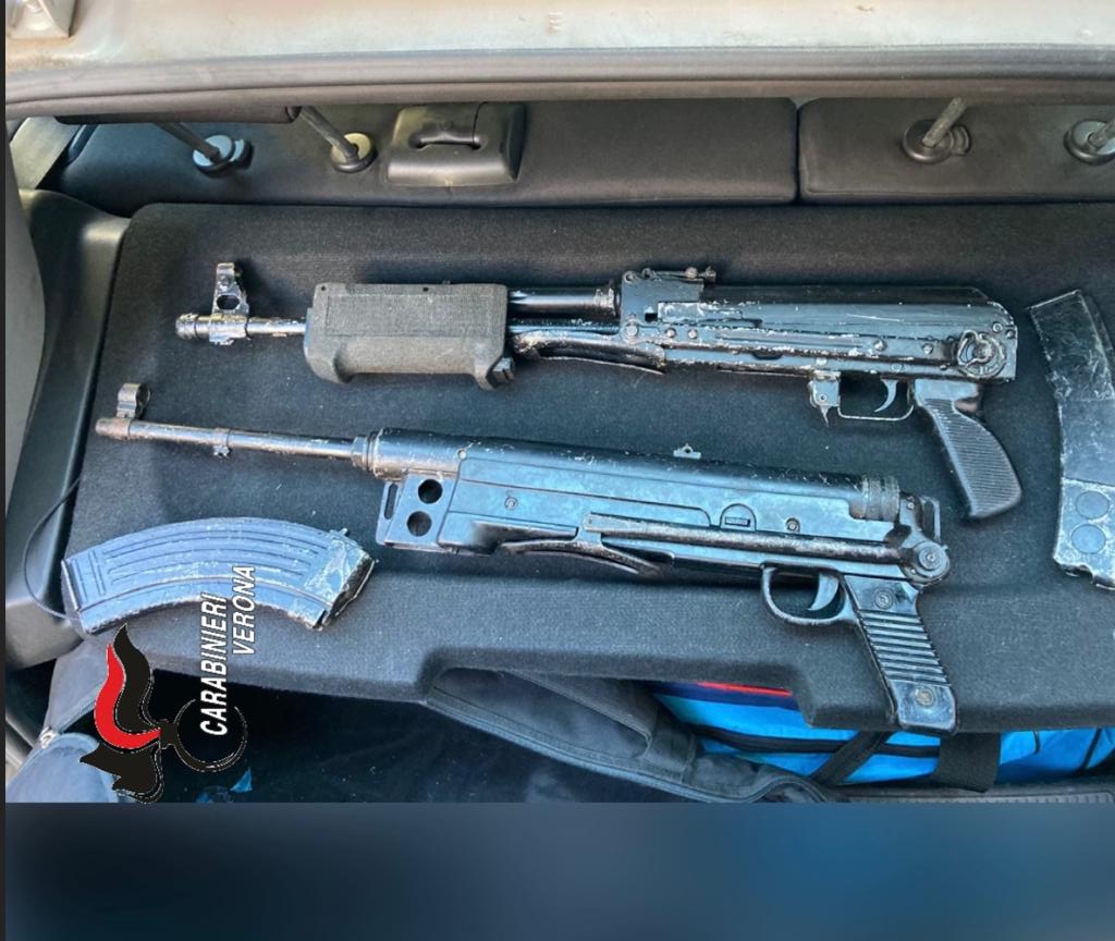 Lo fermano per un controllo antidroga, e gli trovano nella custodia della chitarra armi da guerra: un Kalashnikov, un mitra e una pistola. Nell mattinata del 13 ottobre i militari di Caprino Veronese hanno arrestato in flagranza di reato un cittadino italiano, P.L. di anni 55 residente a Verona, trovato in possesso di un fucile d’assalto automatico AK 47, noto come Kalashnikov, un altro fucile d’assalto automatico di fabbricazione est europea e una pistola Beretta semiautomatica.