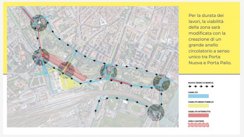 E’ senza dubbio uno dei cantieri più impattanti dell’opera, da qui la decisione di farlo partire dopo Vinitaly 2023 e procedere speditamente per concluderlo prima di Vinitaly 2024. Per la durata dei lavori, la viabilità della zona sarà modificata con la creazione di un grande anello circolatorio a senso unico tra Porta Nuova e Porta Palio, la Stazione sarà sempre raggiungibile anche dai mezzi privati, tuttavia sarà data priorità ai mezzi pubblici e ai taxi.