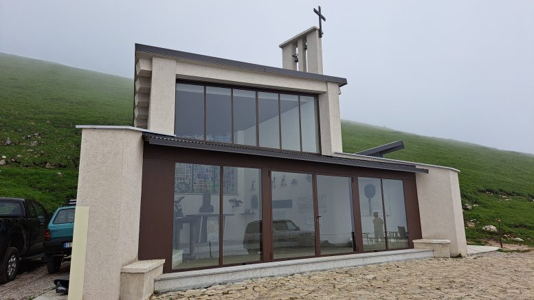 Il progetto prevedrebbe anche la costruzione di una seconda “ala” simmetrica a quella già esistente, abbattuta dal vento e che è stata sapientemente ricostruita. Ma questo è un ulteriore step da valutare in un secondo momento: manca ancora l’autorizzazione urbanistica. La ricostruzione della chiesetta è stata lunga e complessa, rallentata dall’emergenza pandemica e dai limiti che emergono operando a circa 2mila metri d’altitudine.