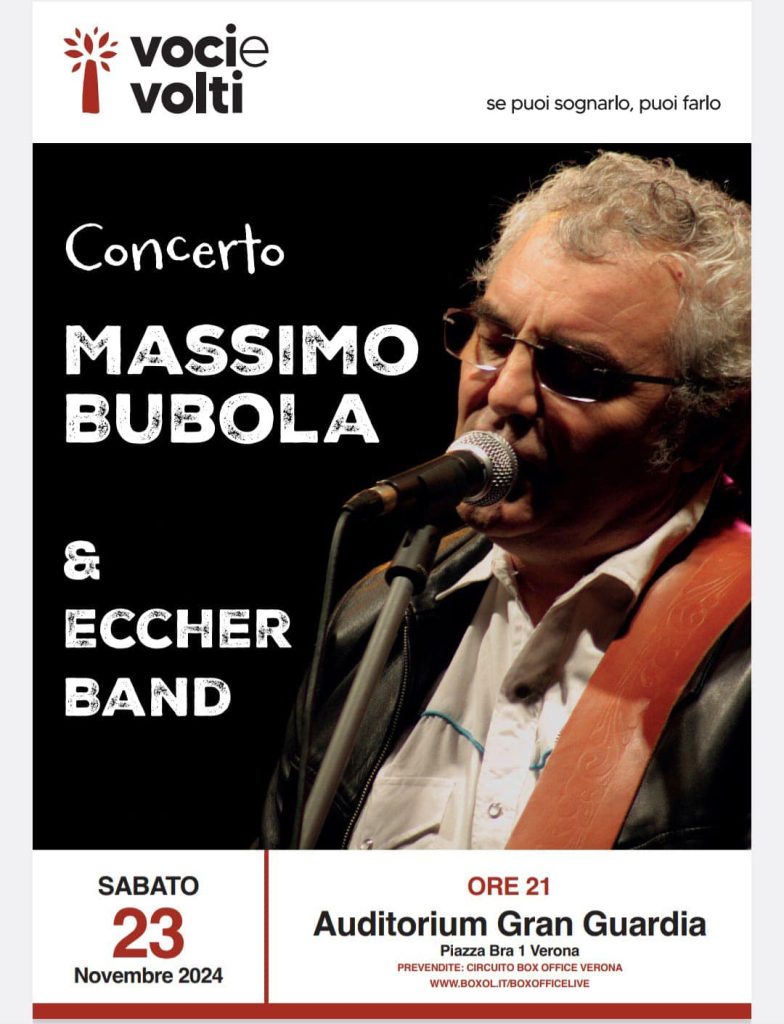 Sabato 23 novembre alle 21, l’Auditorium della Gran Guardia di Verona ospiterà un concerto benefico di Massimo Bubola. Il cantautore veronese si esibirà insieme alla sua storica Eccher Band, unendo la sua passione per la musica e il sostegno a una causa importante.