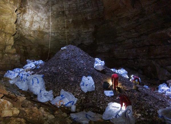 Un lavoro di squadra per ripulire la grotta.