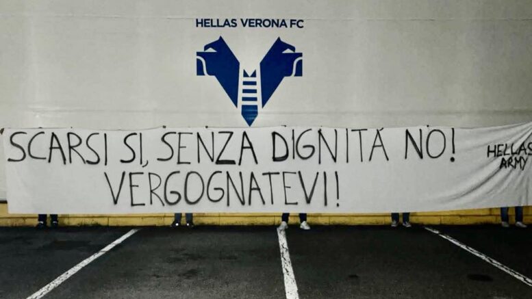 Dopo l’ennesima durissima sconfitta dell’Hellas Verona, tornato da Cagliari con quattro gol nel groppone e sempre ultimo in classifica, in città scatta la contestazione. Con la panchina del mister Paolo Zanetti sempre più in bilico, nel mirino finisce soprattutto l’atteggiamento della squadra, considerato troppo arrendevole e rinunciatario, a fronte di una posizione di classifica che richiederebbe ben altra “garra”.