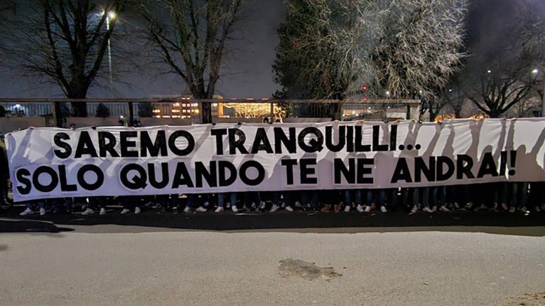 Qualche centinaio i tifosi che si sono dati appuntamento in Zai, in via Olanda, sorvegliati da una massiccia presenza di forze dell’ordine e polizia locale. Con quel messaggio, inequivocabile, contenuto nello striscione: “Saremo tranquilli solo quando te ne andrai”.