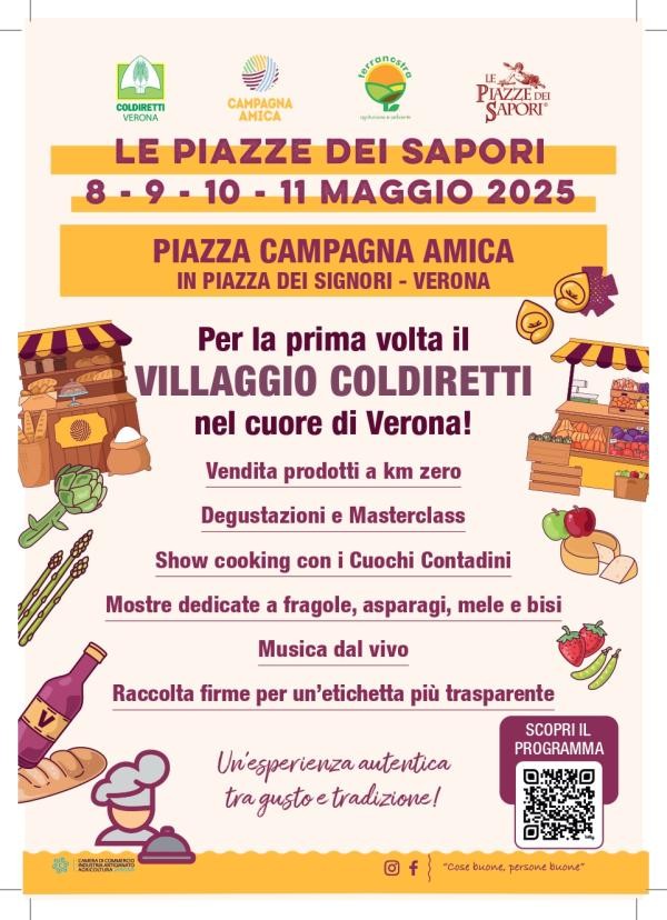 Inaugurato questa mattina il primo Villaggio di Coldiretti Verona che in occasione delle Piazze dei Sapori, la storica manifestazione di Confesercenti, è presente da ieri in piazza dei Signori e vi rimarrà fino a domenica sera.