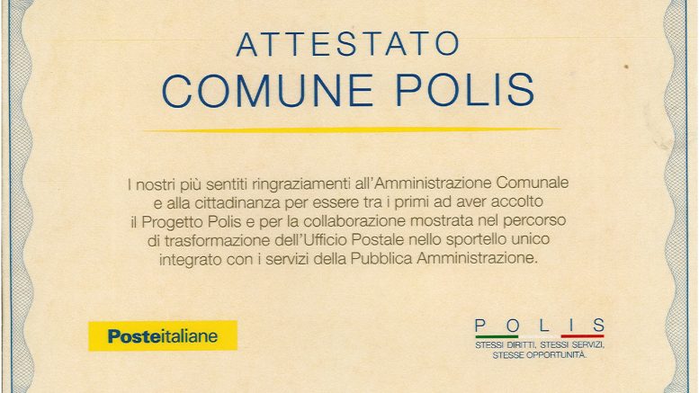 Poste Italiane ha consegnato ai sindaci di 25 comuni della provincia di Verona una pergamena celebrativa per ringraziarli della partecipazione al progetto Polis.