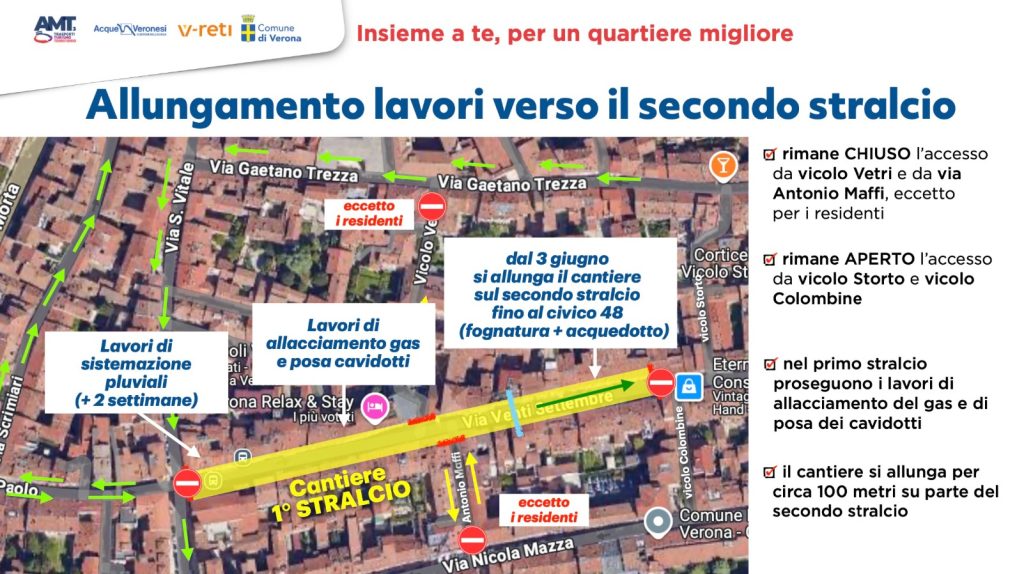 Dal punto di vista operativo, sarà anticipato anche l’abbassamento dei sottoservizi gas ed elettrici per comprimere ulteriormente i tempi della fase successiva. Restano attivi i voucher gratuiti per i residenti con garage non accessibile e stalli riservati per i possessori di Citypass Veronetta.