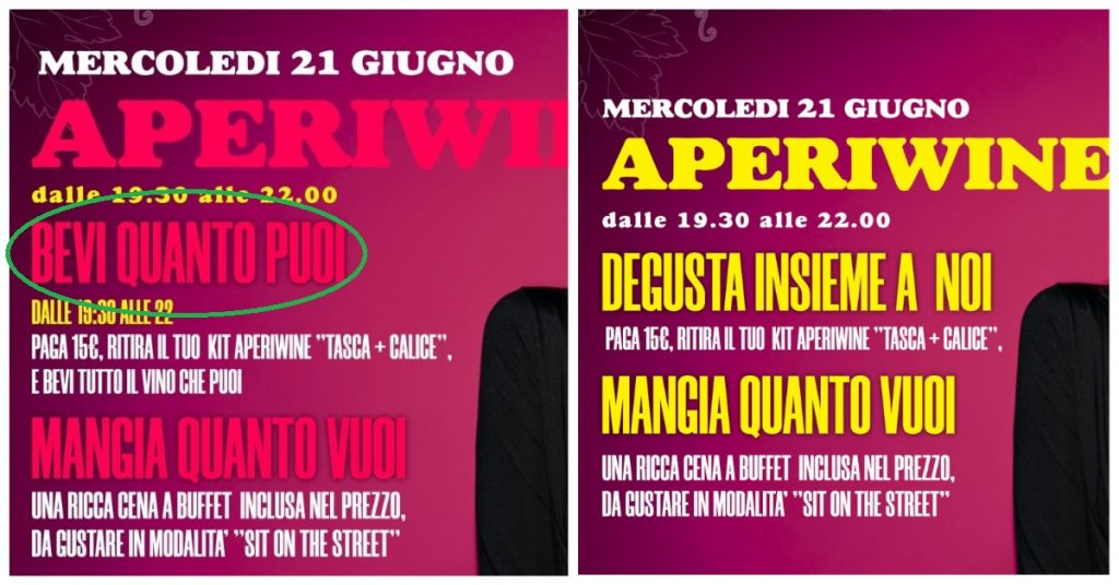 “Ovvero che si può bere, ma lo si deve necessariamente fare in maniera responsabile, e non certo senza limiti apparenti. Come invece è stato riportato nella locandina, che peraltro oggi è stata modificata ma che comunque è stata diffusa ampiamente. Il contrasto deve essere forte, siamo in un contesto di incidenti stradali in crescita e con esiti drammaticamente peggiorati e dobbiamo tutti, per la parte che ognuno è tenuto a fare, operare nella direzione giusta, mantenendo anche un atteggiamento etico. La trasmissione del senso di responsabilità deve partire dagli adulti, indipendentemente dal ruolo che esercitano o dall’attività che svolgono”.