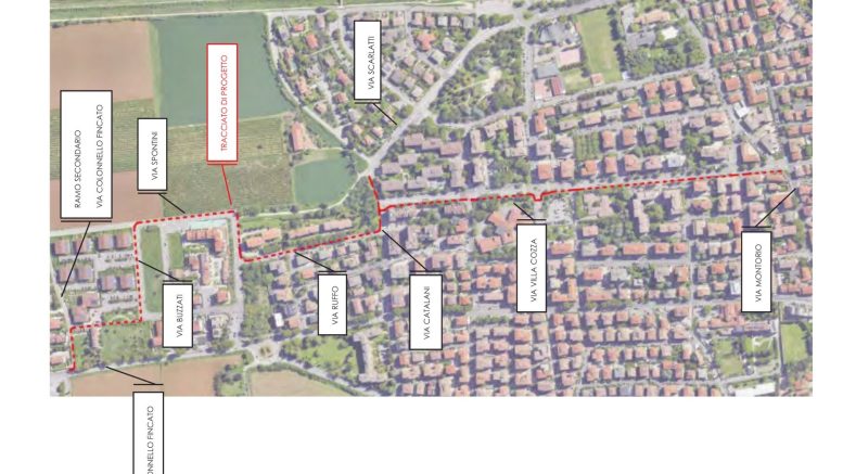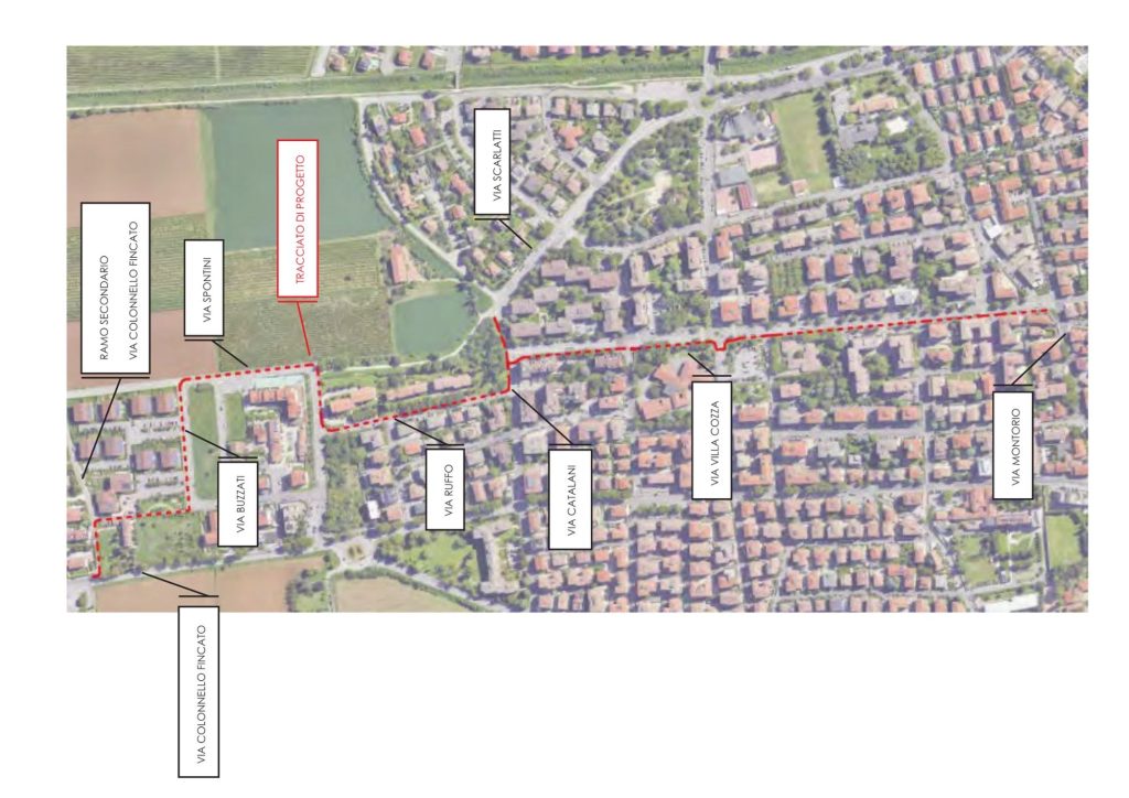 Il tracciato della nuova ciclabile, lungo 1,6 chilometri prevede la partenza da via Fincato, all’altezza del supermercato Esselunga, fino a via Montorio, andando ad interessare le seguenti vie: Via Belvedere (che diventa a senso unico) / via Fincato (ramo secondario che parte dalla principale nell’intersezione con via Braille), corridoio ciclo-pedonale esistente di collegamento tra via Fincato e via Buzzati, via Spontini, via Ruffo (che diventa a senso unico), via Catalani per giungere in via Villa Cozza.
