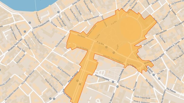 - divieto di transito a tutti i veicoli e ai pedoni, all’interno delle strade che ricadono nella zona gialla, eccetto i titolari di apposito pass rilasciato dal Comune di Verona