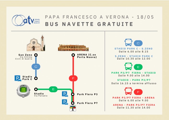 “Sono settimane che le varie Direzioni del Comune, in collaborazione con Diocesi, Prefettura e Questura, stanno lavorando per accogliere questa visita storica, mettendo a sistema tutte le risorse della città –afferma l’assessora alla Sicurezza Stefania Zivelonghi -. L’impostazione scelta è improntata a far convivere questo evento con la vita ordinaria dei veronesi, ecco perché le scuole non verranno chiuse e perché le misure viabilistiche previste saranno nell’ottica di una città fruibile e accogliente. Sulla nostra città il 18 maggio avremo l’attenzione del mondo, un evento che è motivo di grande orgoglio ma che ci rende consapevoli dell’impegno che ciò comporta”.