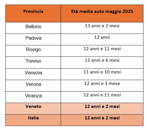 Analizzando i dati a livello provinciale emerge che, in Veneto, le auto più vecchie circolano a Belluno, dove a maggio 2025 l’età media era pari a ben 13 anni e 2 mesi. Seguono, a pari merito, Rovigo e Vicenza, aree dove i veicoli hanno, in media, 12 anni e 11 mesi.