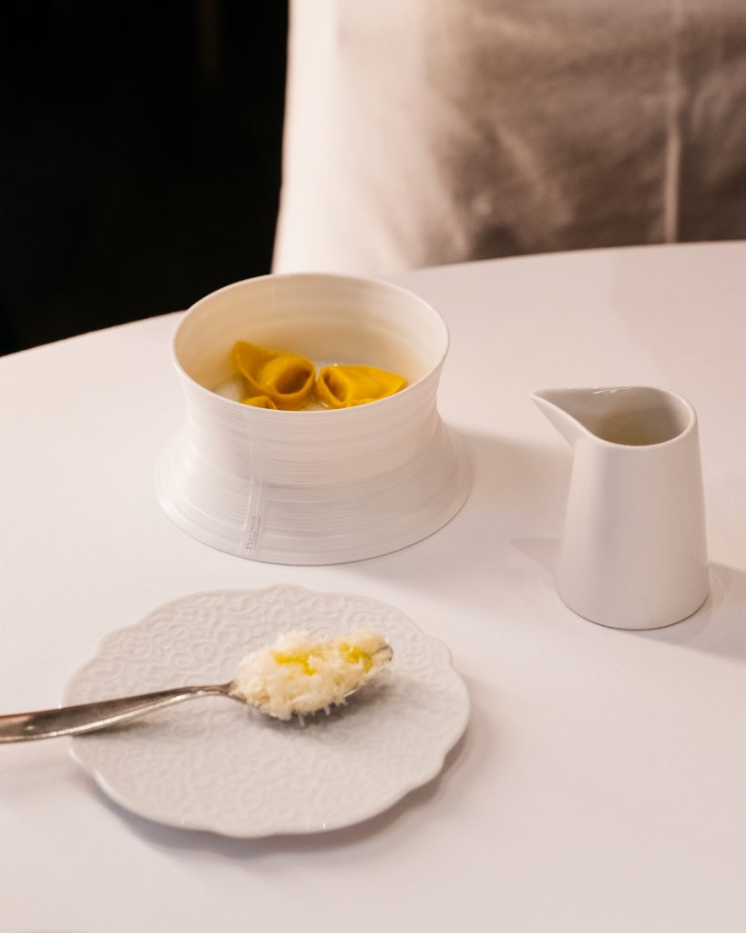 Pescando tra vecchi appunti e personali ricordi, Perbellini ha ideato un breve percorso nella memoria, attualizzandolo: “Sono partito – spiega lo chef che ha permesso a “Casa Perbellini 12 Apostoli” di conservare la duplice stella Michelin – pensando agli ingredienti che più piacevano a Giorgio e insieme ai ragazzi della mia brigata ho dato vita a quattro piatti interpretati in una chiave contemporanea cercando però di restare il più possibile fedele all’originale”.