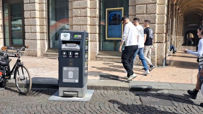 Verona, in piazza Bra i nuovi bidoni autocompattanti.