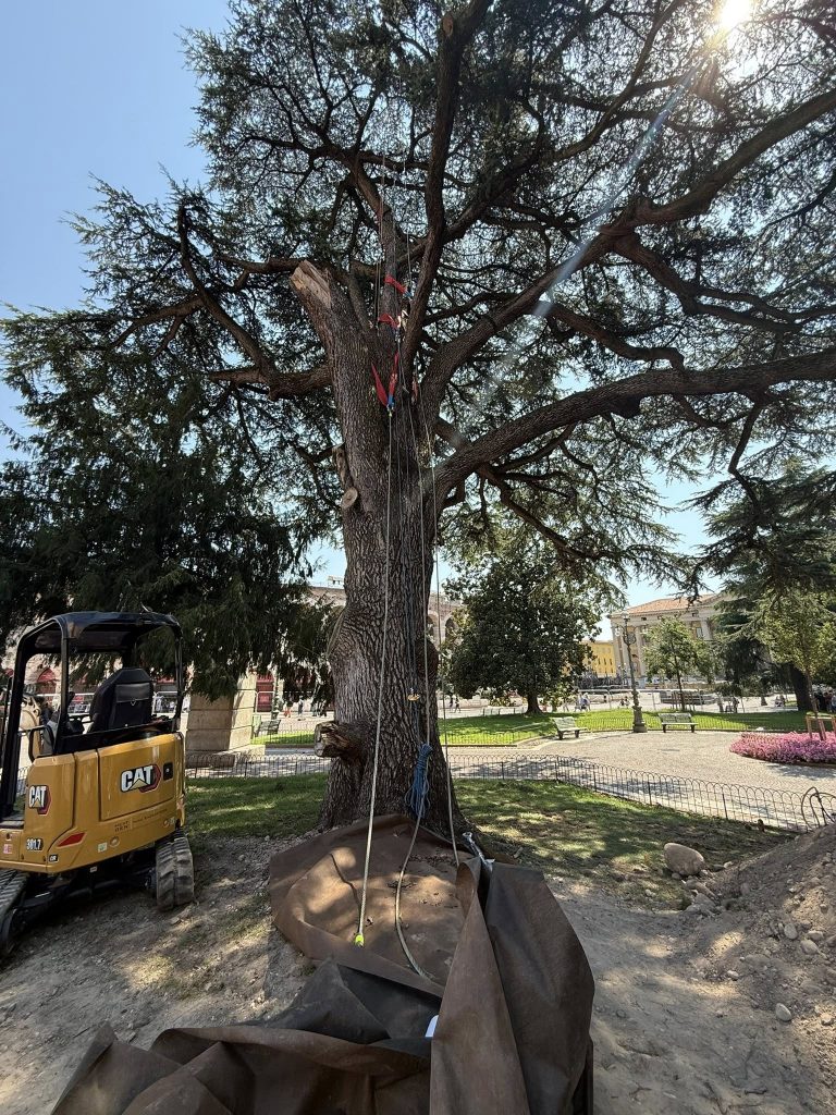 Il gigante di Verona è salvo: al via il maxi-intervento in Brà per la messa in sicurezza del cedro.